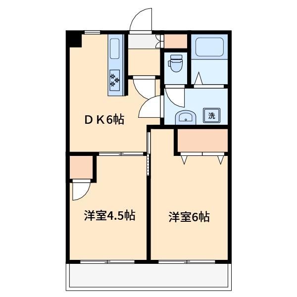 | 築年月 | 1977年12月 | 間取り | 2DK( 洋室6畳/洋室4.5畳/DK6畳 ) | 専有面積 | 43.8m2 |