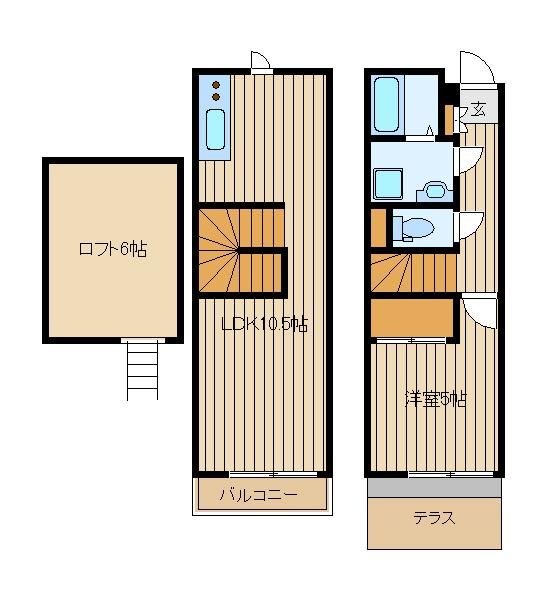 | 種別 / 構造 | テラスハウス / 木造 | 主要採光面 | 南 | 所在階 / 階数 | 2階 / 2階 |