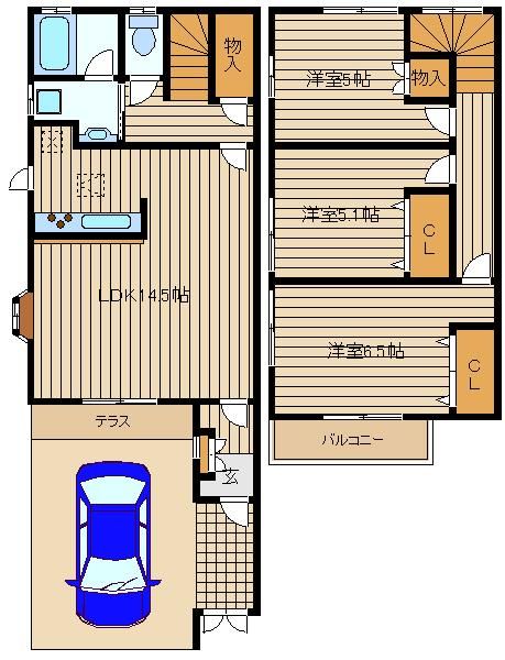 | 種別 / 構造 | テラスハウス / 木造 | 主要採光面 | 南 | 所在階 / 階数 | 1階 / 2階 |