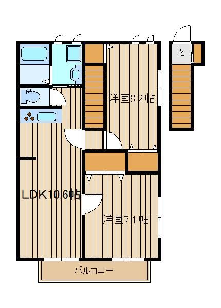 | 種別 / 構造 | アパート / 木造 | 主要採光面 | 南 | 所在階 / 階数 | 2階 / 2階 |